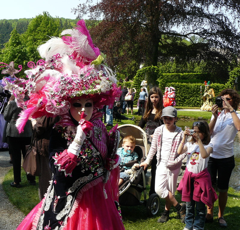 Chaque année, les jardins d'Annevoie accueillent des costumés de Venise. Ce sont des groupes de personnes passionnés des costumes vénitiens qui se produisent un peu partout, pour le plaisir de se montrer.